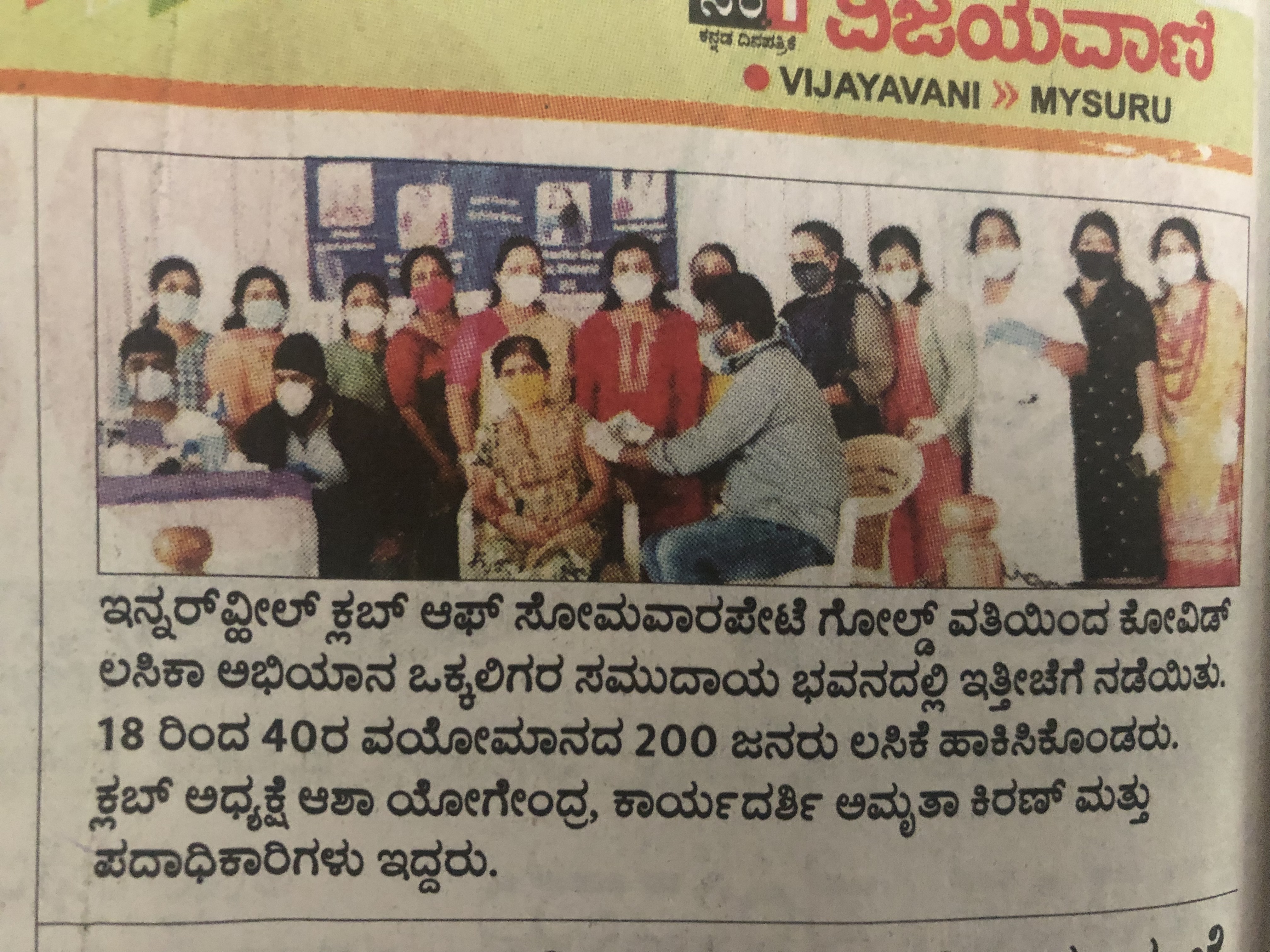 Free vaccine drive was organised by our club. First dose of Covishield vaccine was administered to age group between 18-44 years. 200 doses of vaccine was purchased and given to students, estate workers and other needy people.