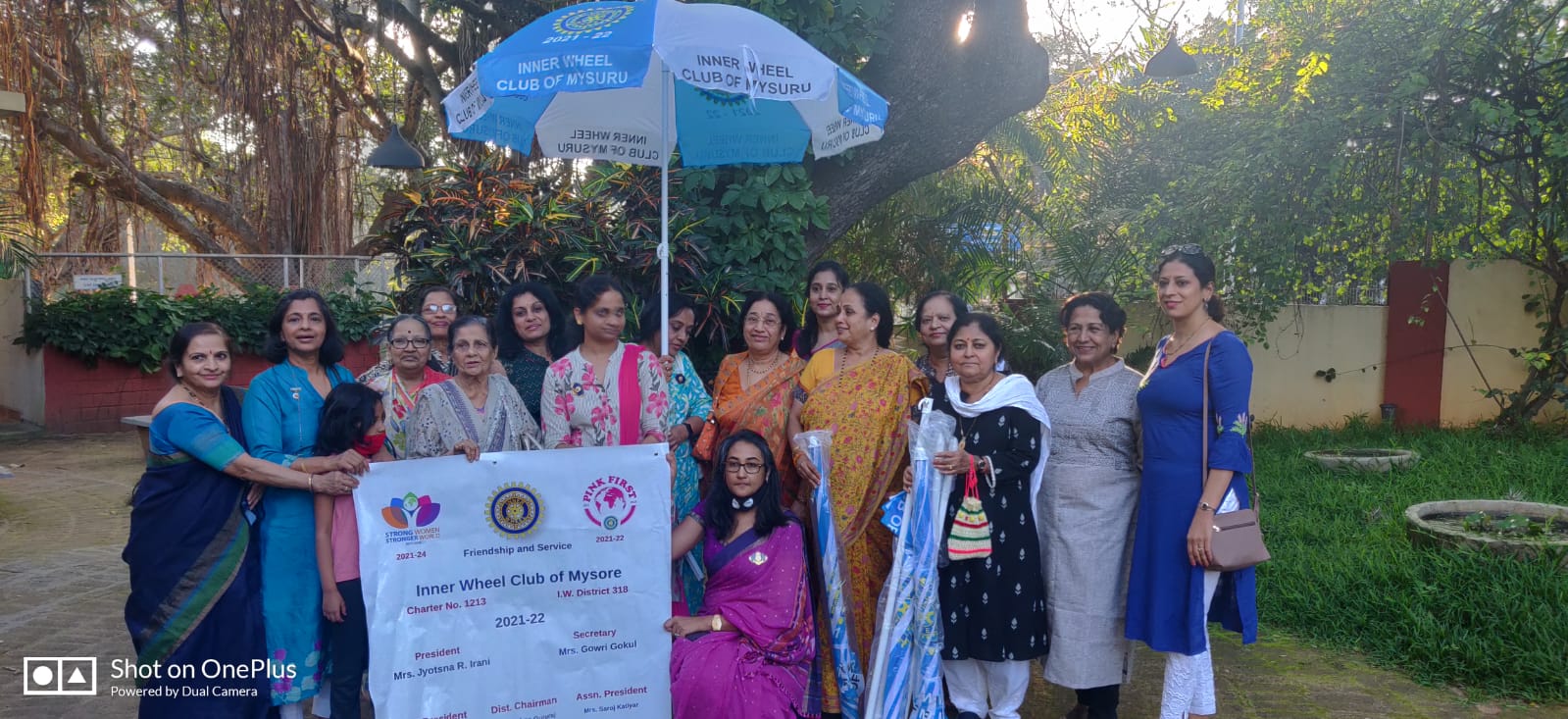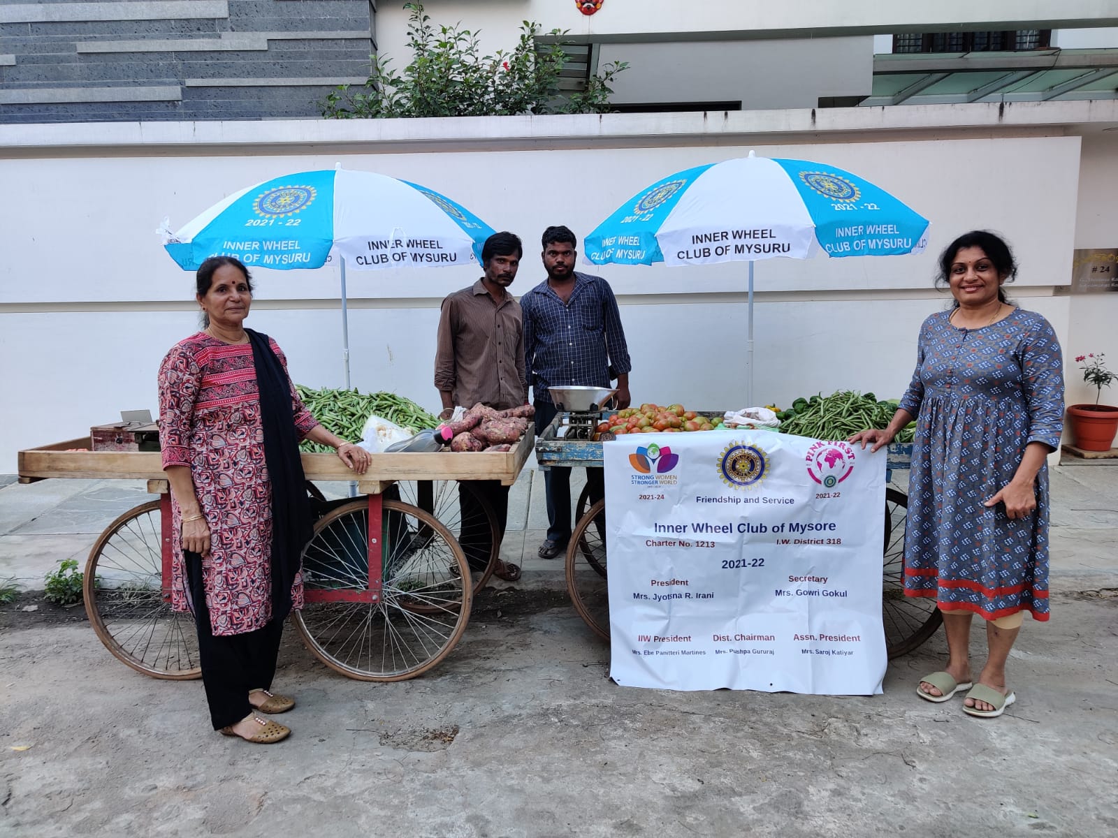 Inner Wheel Mysore expressed its compassion to street vendors around Mysore city by distributing big sized sun umbrellas to needy vendors who brave the sun and rain to earn a living every day.