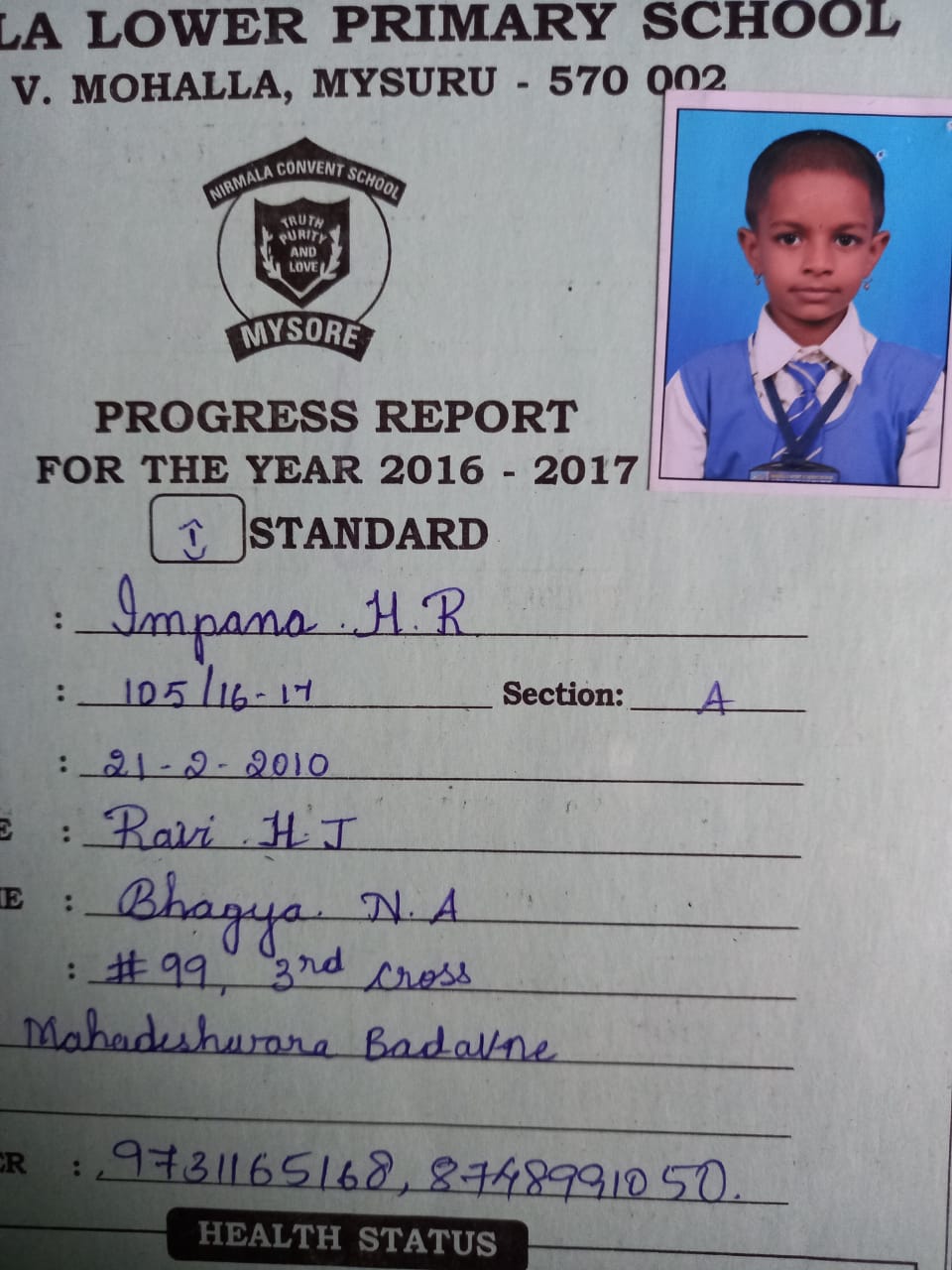 Part of the school fees was paid for this child`s education at the Nirmala Convent School.