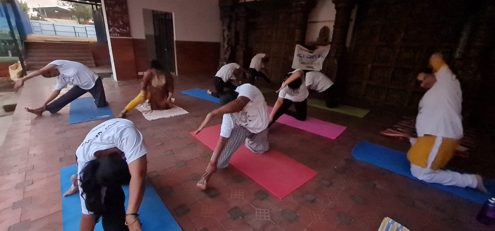 Our club organized a 10 days Yoga course open for all the non club members. It was conducted by Mrs Sudha Manjunath, who runs Amrutha yoga kendra in Shimoga. She has been a yoga instructor since 1990 and has trained thousands of students in her academy.