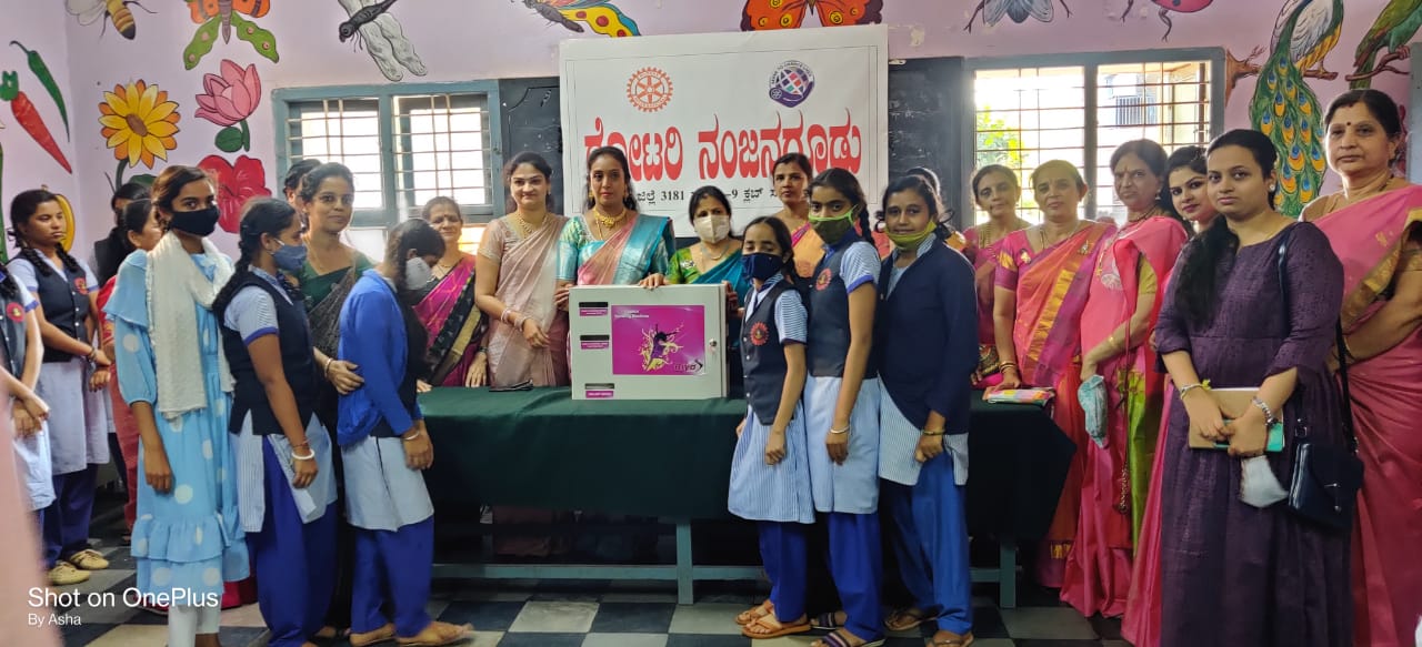 We gave sanitizer Napkin vending machine to Rotary school by the presence of District Chairman