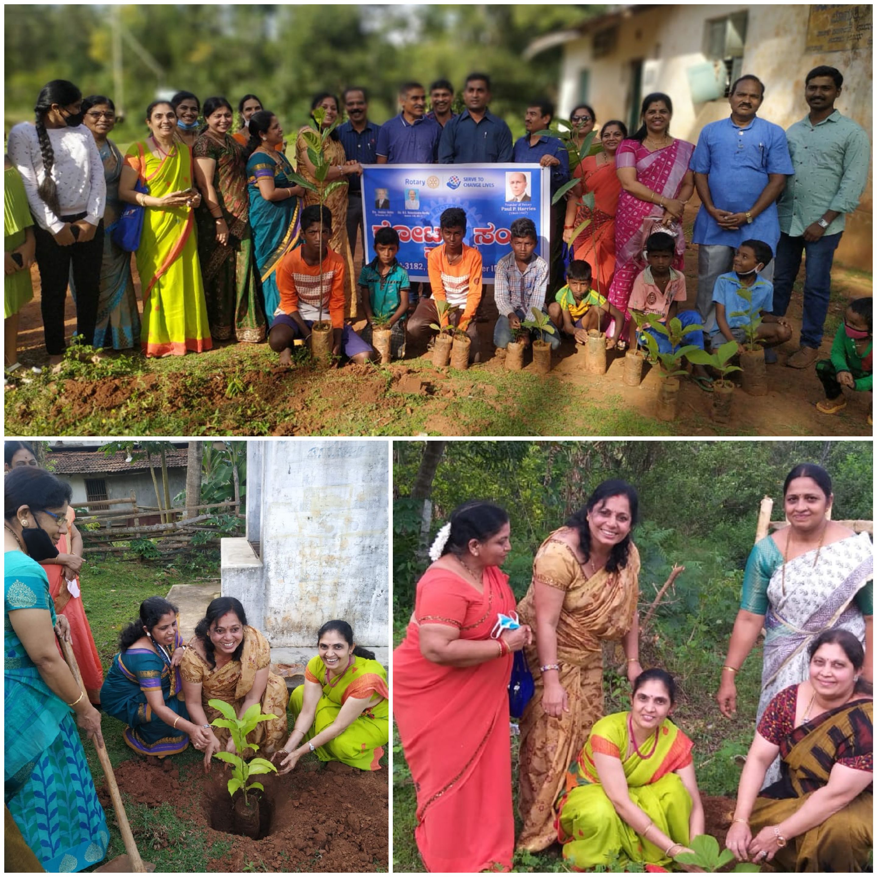 26 july 2021 Vanamahotsav celebration with Rotary Club Sagar .We provided and planted 25 tree saplings to Bomatti school , SCST colony and Eshwar temple at Manchale