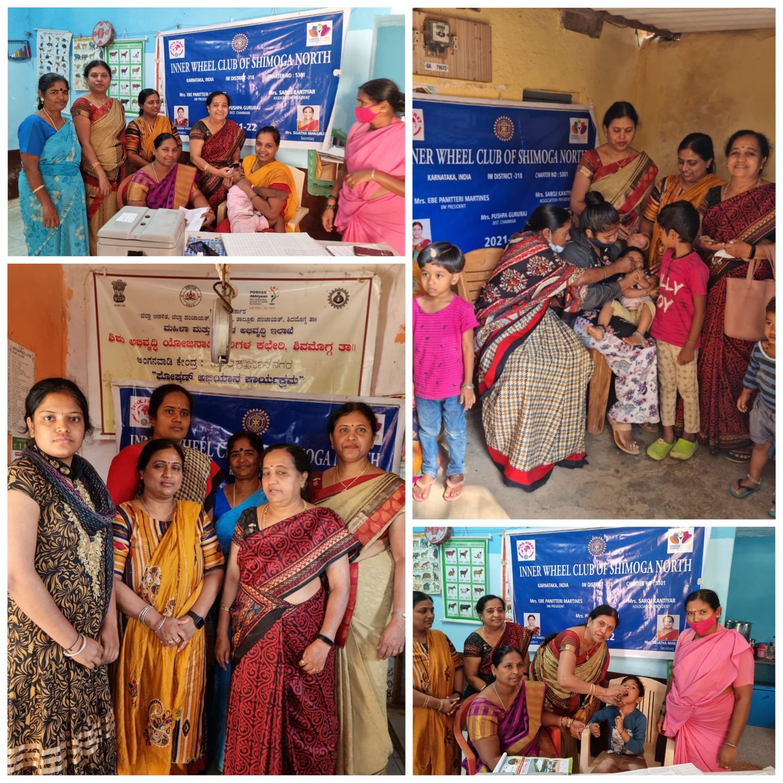 Inner Wheel Club supported Polio Vaccination Drive by distributing breakfast for Asha and Anganavadi workers at three booths in Shanthi Nagar, Shivamogga