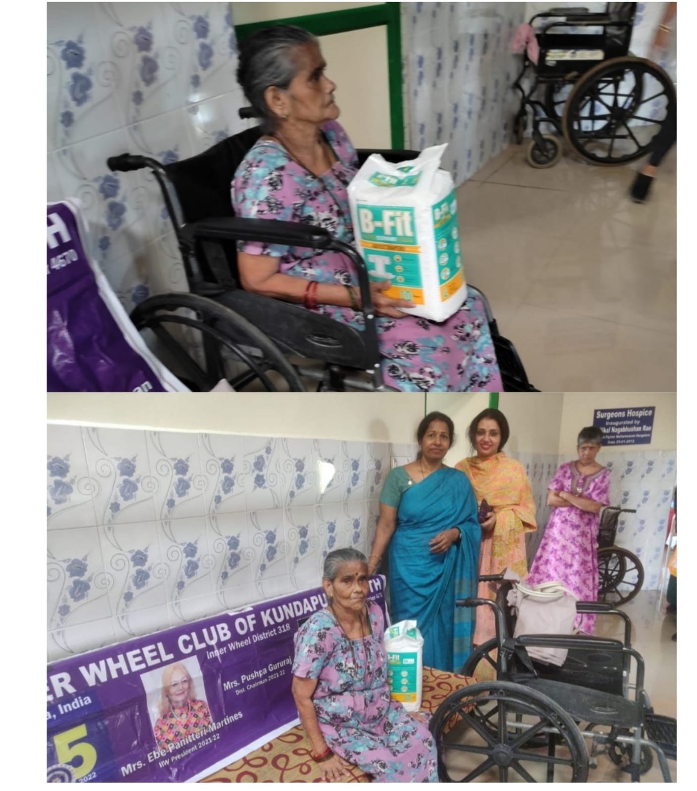 we donated wheelchair, diapers, and air bed to Surgeon's hospital old age home..