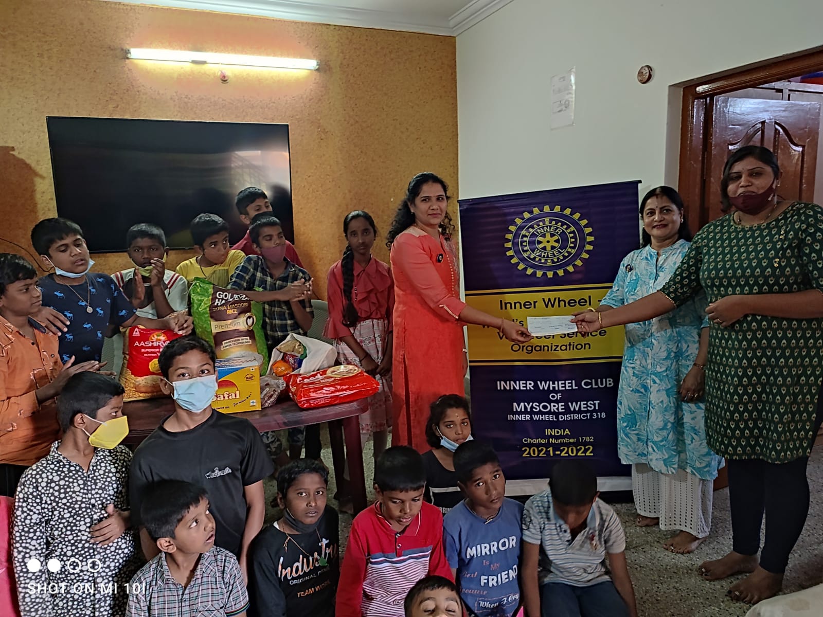 IW president and project co-ordinator distributed Cheque of Rs-5,000/- towards groceries at Savinenapu Foundation -Home of orphanages also chocolates and bananas were distributed by project co-ordinator to children.