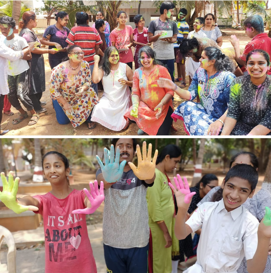 All the club in Mysore celebrated Holi with Vikalachethana Abhyudaya seva samsthe and distributed sweets , savouries and juice to kids and their parents and teachers