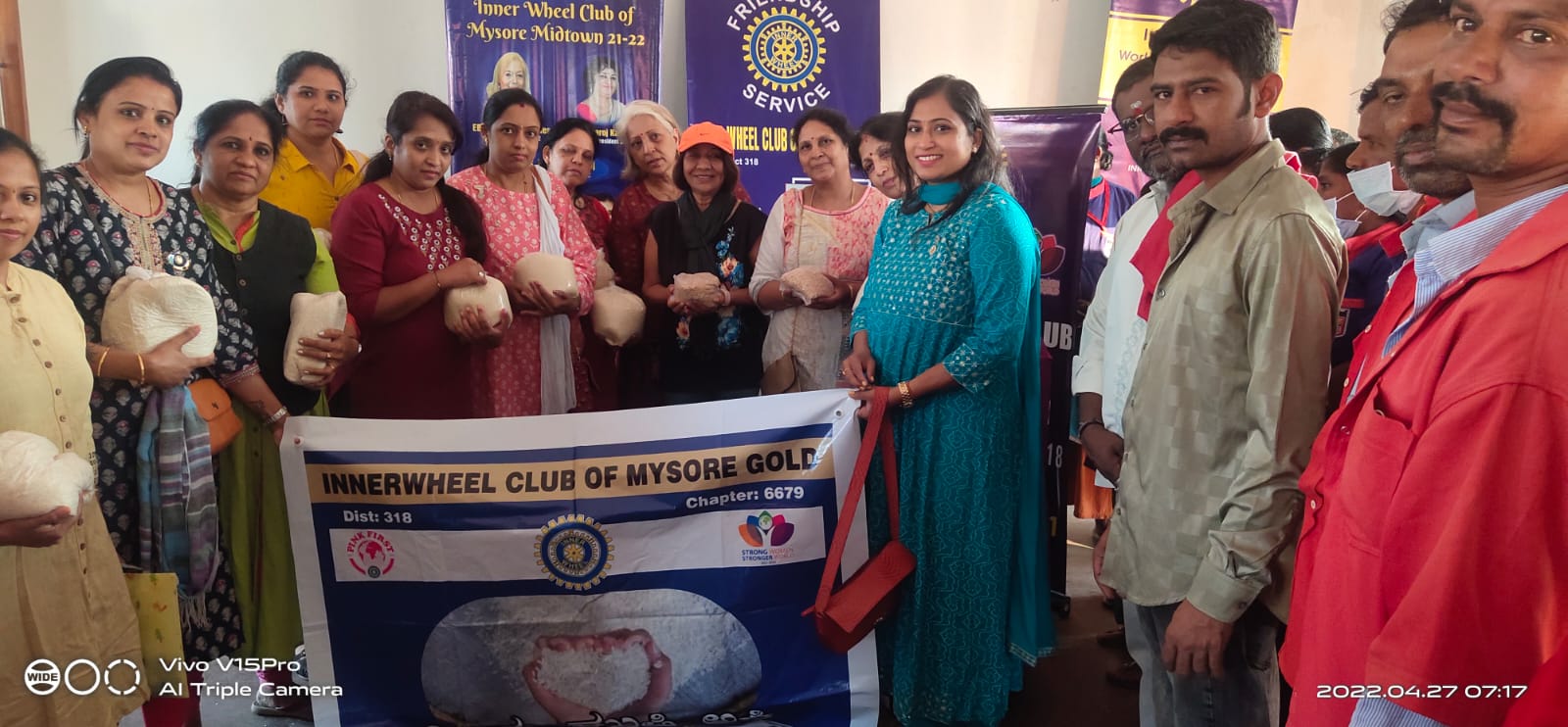 In a joint project with all the Inner Wheel clubs of Mysore, donated Rice and Dal to the Porters / Coolies at the Mysore Railway Station .