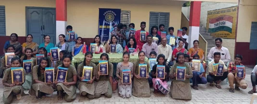 IWC Mysore gold donated 300 notebooks with the club name and logo to the students of kukkralli school,Mysore.