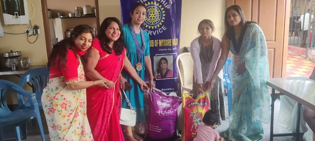 IWC Najangud joined hands with our club and donated 25 kg rice to CHIGURU ashram( home for destitutes,Mysore).Mysore gold donated 25 kg rice,wheat flour,health mix,tea,rava,ragi flour along with blankets,preloved saree,preloved nighties.We distributed juice and fruits to the inmates.(25 kg and groceries were donated by sponsorors)