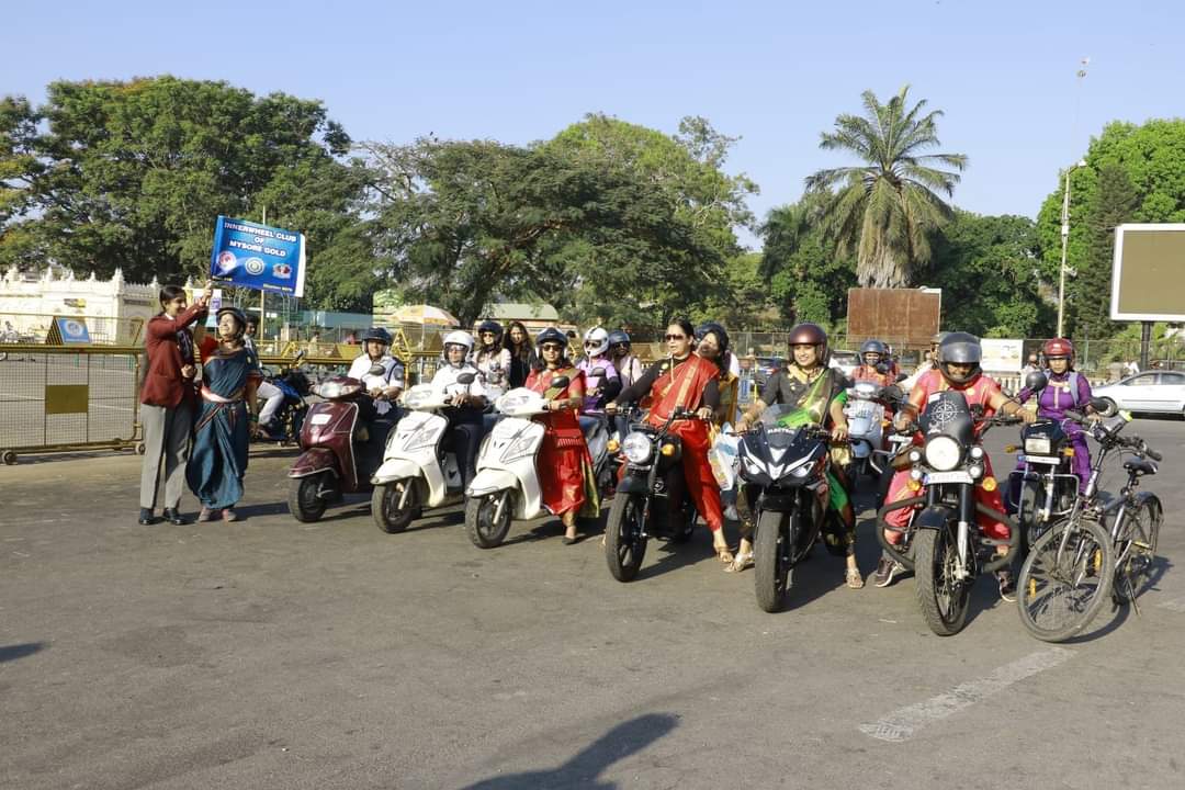 To eliminate gender bias predominantly and to create awareness on female foeticide,female education and early girl child marriage,IWC mysore gold organised all womens bike rally till chamundi hill from Mysore palace gate.