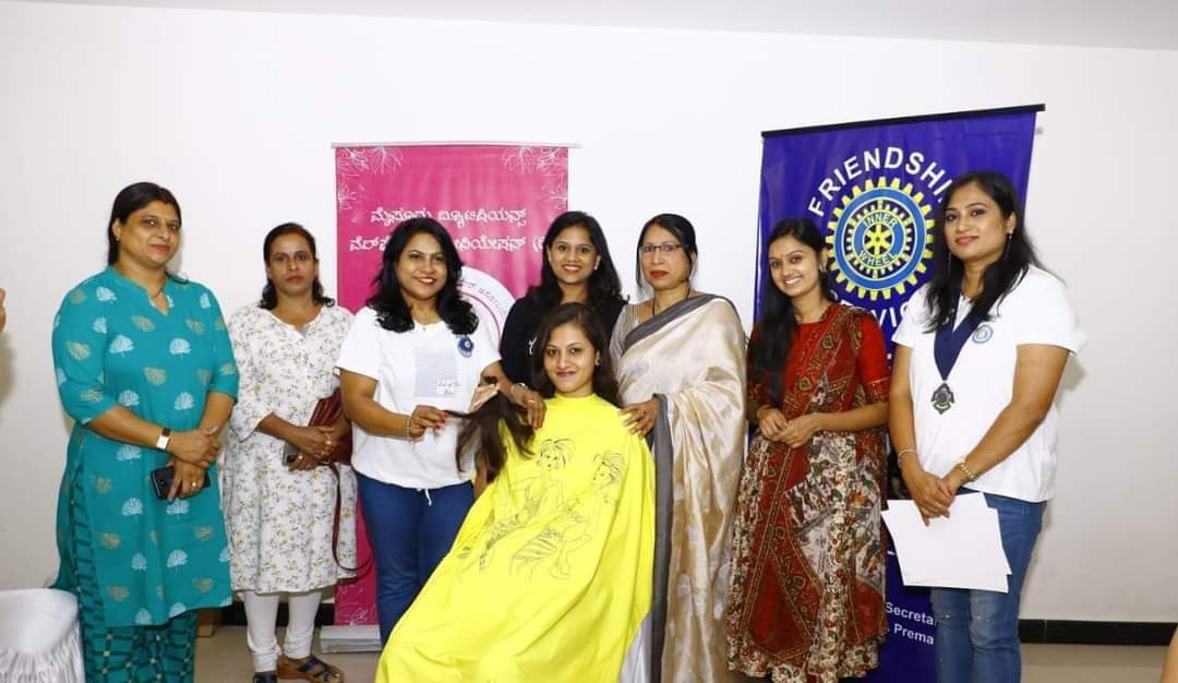 Hair donaton camp was organised in association with mysore beauticians welfare association.More than 100 bunch of hairs were collected from the age of 8 years to 70 years.An aspiring kannada actress Tanvi rao was the chief guest along with Bhagta madesh and sub inspector madesh.These hairs were sent to make wigs for the cancer patient who lost their hair during chemo therapy.