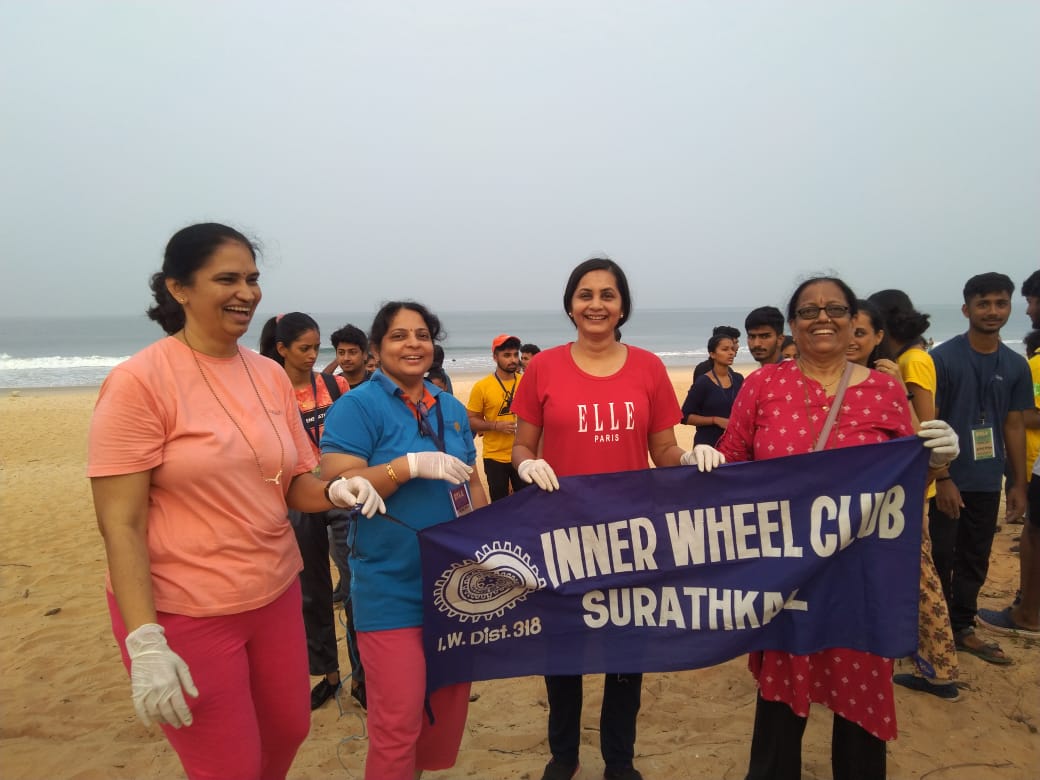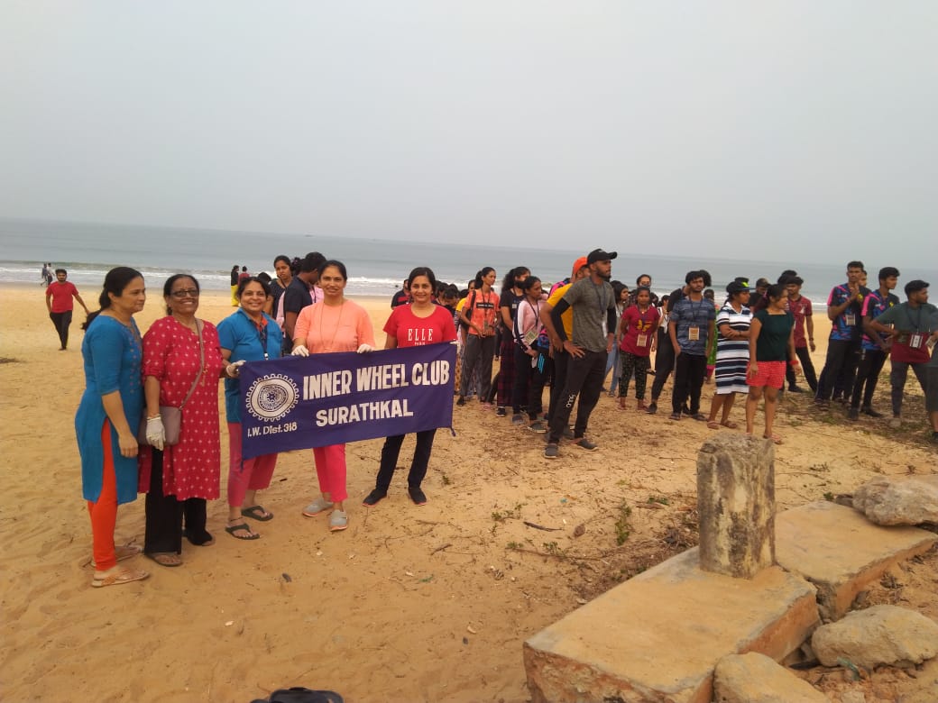 IWC Surathkal members join hands with Rotary club Surathkal ,RYLA college.and participated in beach cleaning near NITK