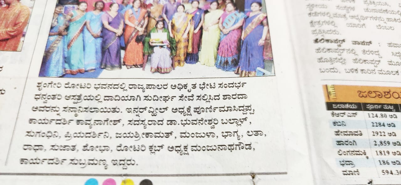 Mrs, Pushpa Gururaj Honored Mrs, Sharada nurse of Sharada Dhanavanthari Hospital, Sringeri for her remarkable achievement in vocational service.
