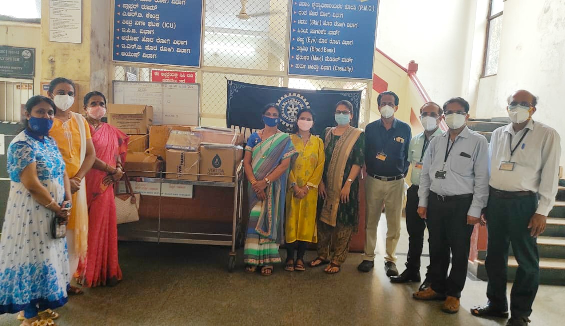 18th June Handed over disposable aprons, isolation face shields, surgical caps, surgical requirements, masks, to District surgeon Dr Madhusudhan Nayak of Udupi District Govt Hospital, Ajjarkadu.