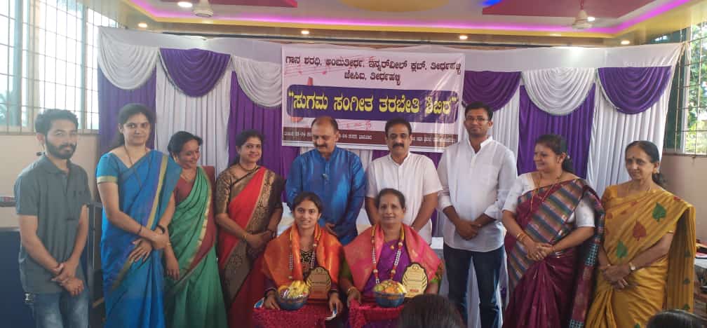 On 23/04/2022 and 24/04/2022 a Sugama Sangeetha Training Camp is arranged at Lakshmi Gopala Sabha Bhavana, Thirthahlli y our club. Mr. Upasana Mohan from Mandya has given training and practice of Sugama Sangeetha. During this training program three outstanding personalities are honored for their outstanding achievements.