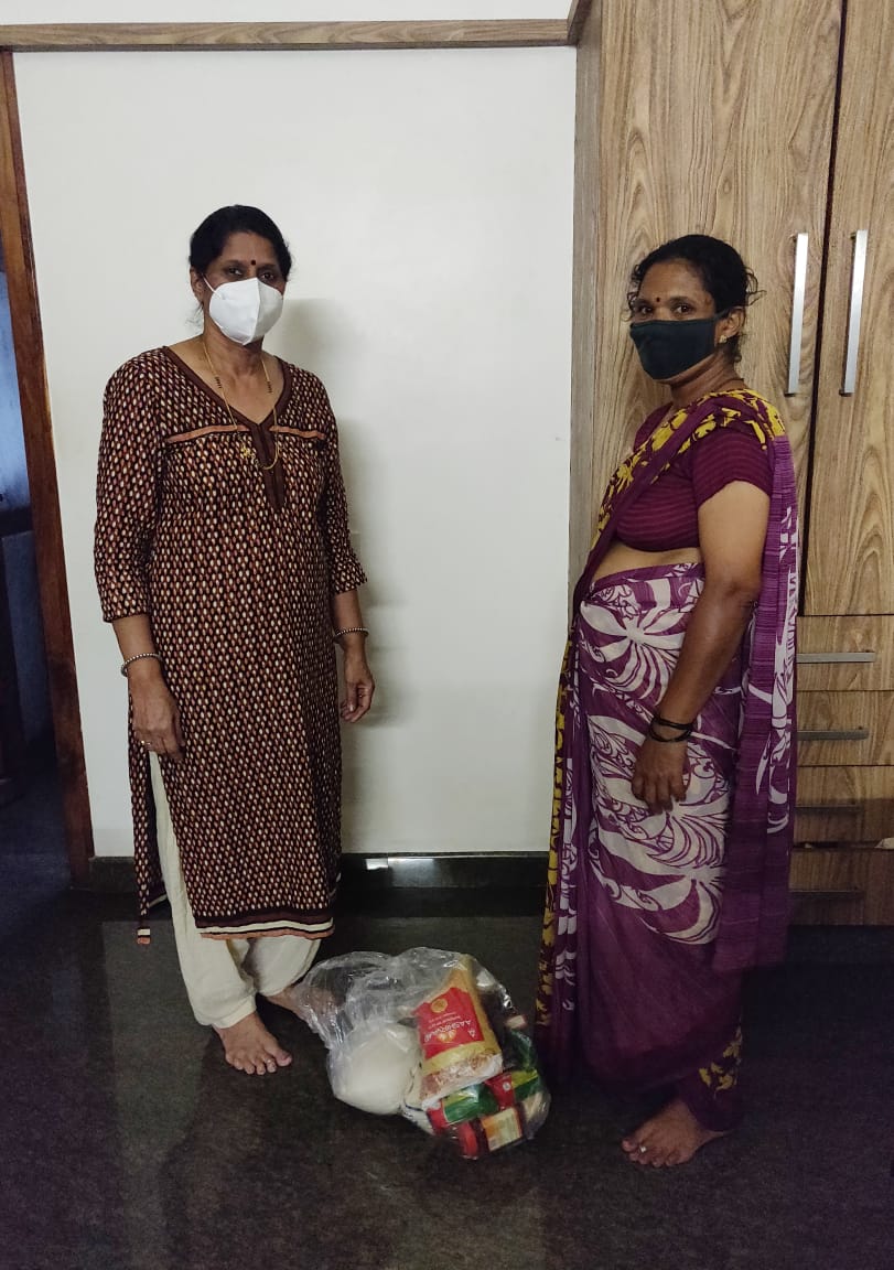 Our member Mrs Usha Kiran handed over Grocery kit to her house maid during corona time.