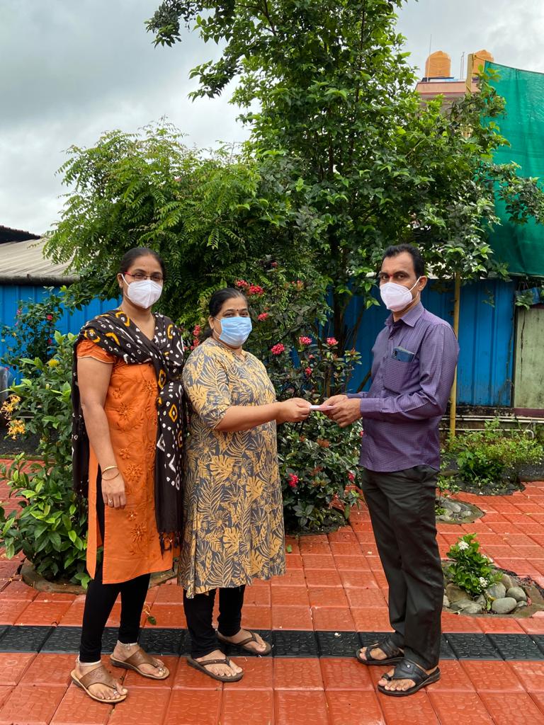 During Lockdown, to cover the operational cost like Teachers salary, Rent we handed over a cheque of 10,000 to Mr. Prakash Shettigar, Managing Trustee of Spoorthi Special school.