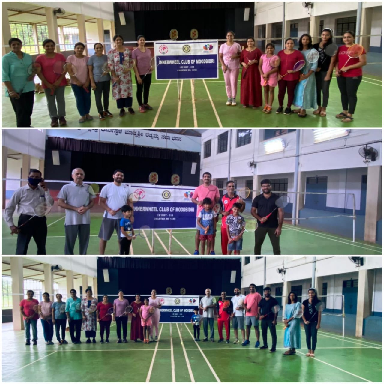 On National Sports day, friendly Badminton matches were arranged at Dhavala College Indoor Court. Talk on Benefits of Sports was given by Rtn Dr Guruprasad Adiga. Matches were played between Rotarians, Anns and children's.