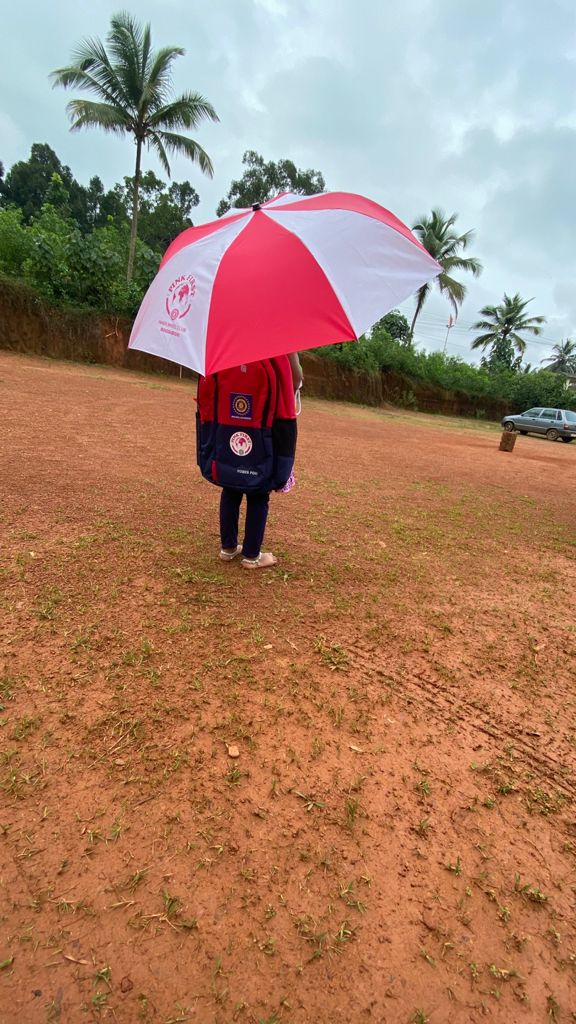 Personalized Bags and Umbrellas along with This year theme printed on them.