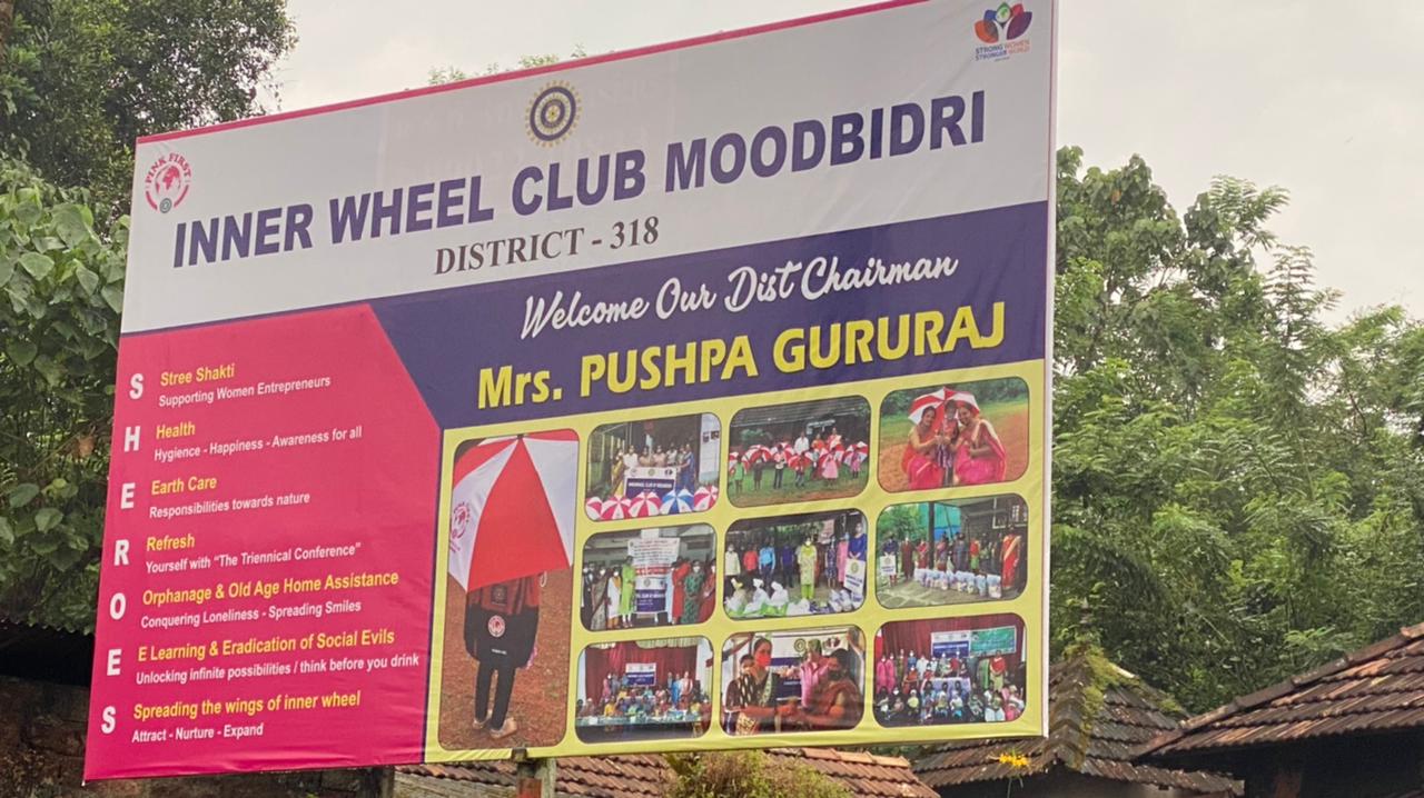 We welcomed our District Chairman Mrs Pushpa Gururaj to her official Visit to Moodbidri with a Huge Hoarding right in front of the hotel where she stayed ( Hotel Ballal Tourist, Moodbidri) . This hoarding was displayed there for entire month of October.