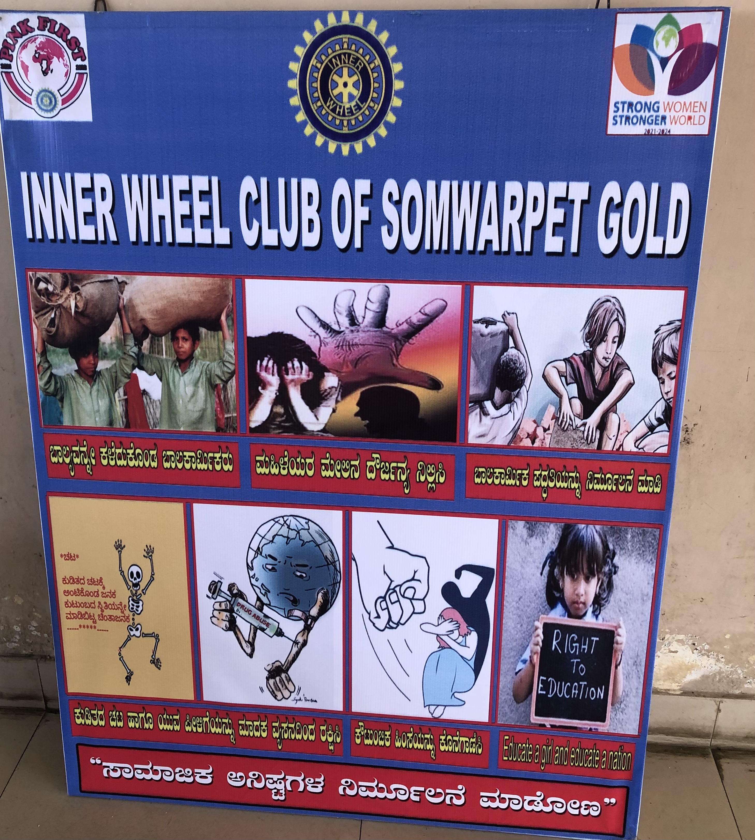 We conducted a walkathon rally with placards to create awareness on eradication of social evils. A hoarding carrying a message to eradicate social evils was installed in govt bus stand,Somwarpet.