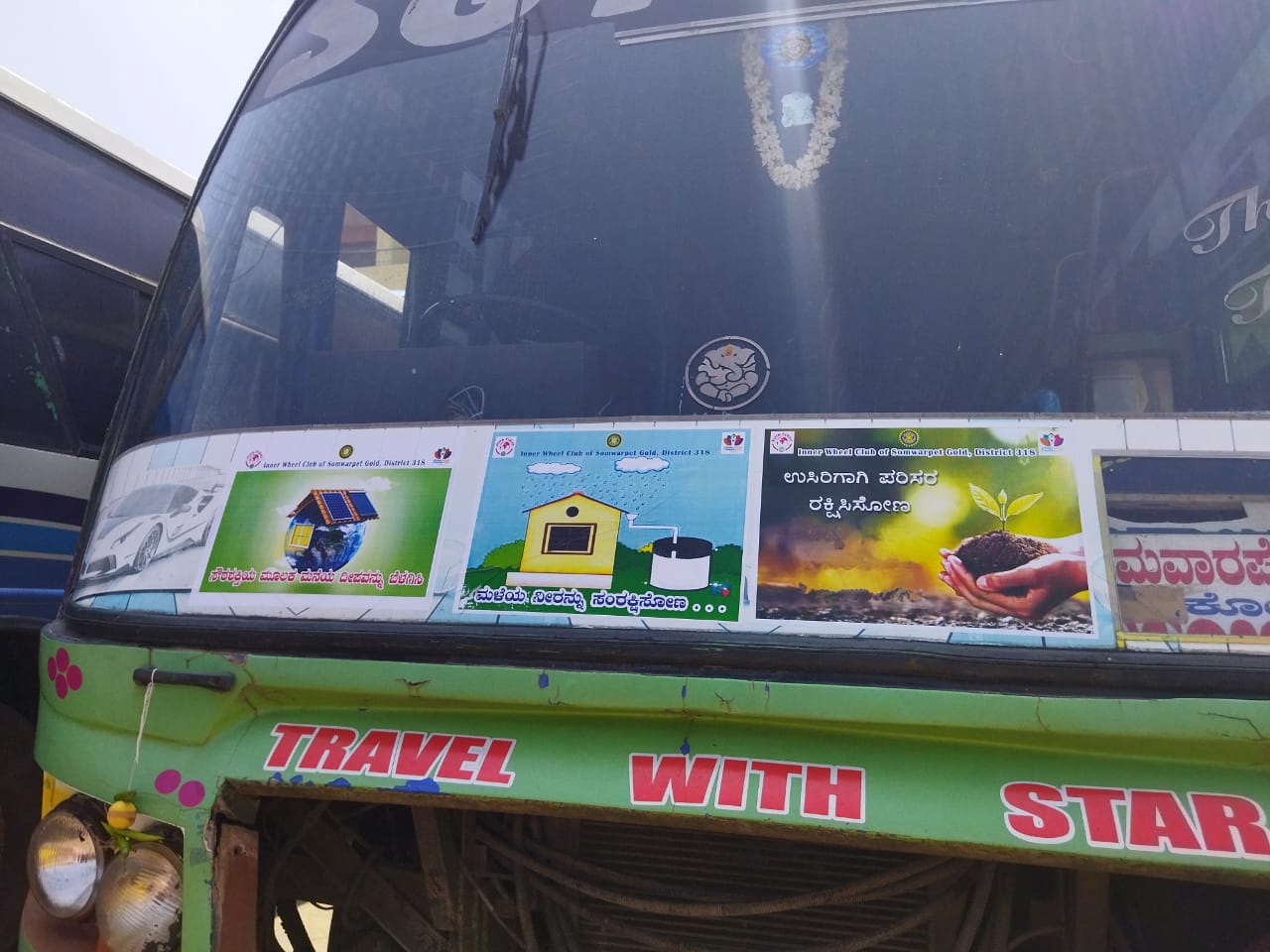 Water conservation, renewable energy & conservation of forest stickers were put on private buses to create awareness about earth care.