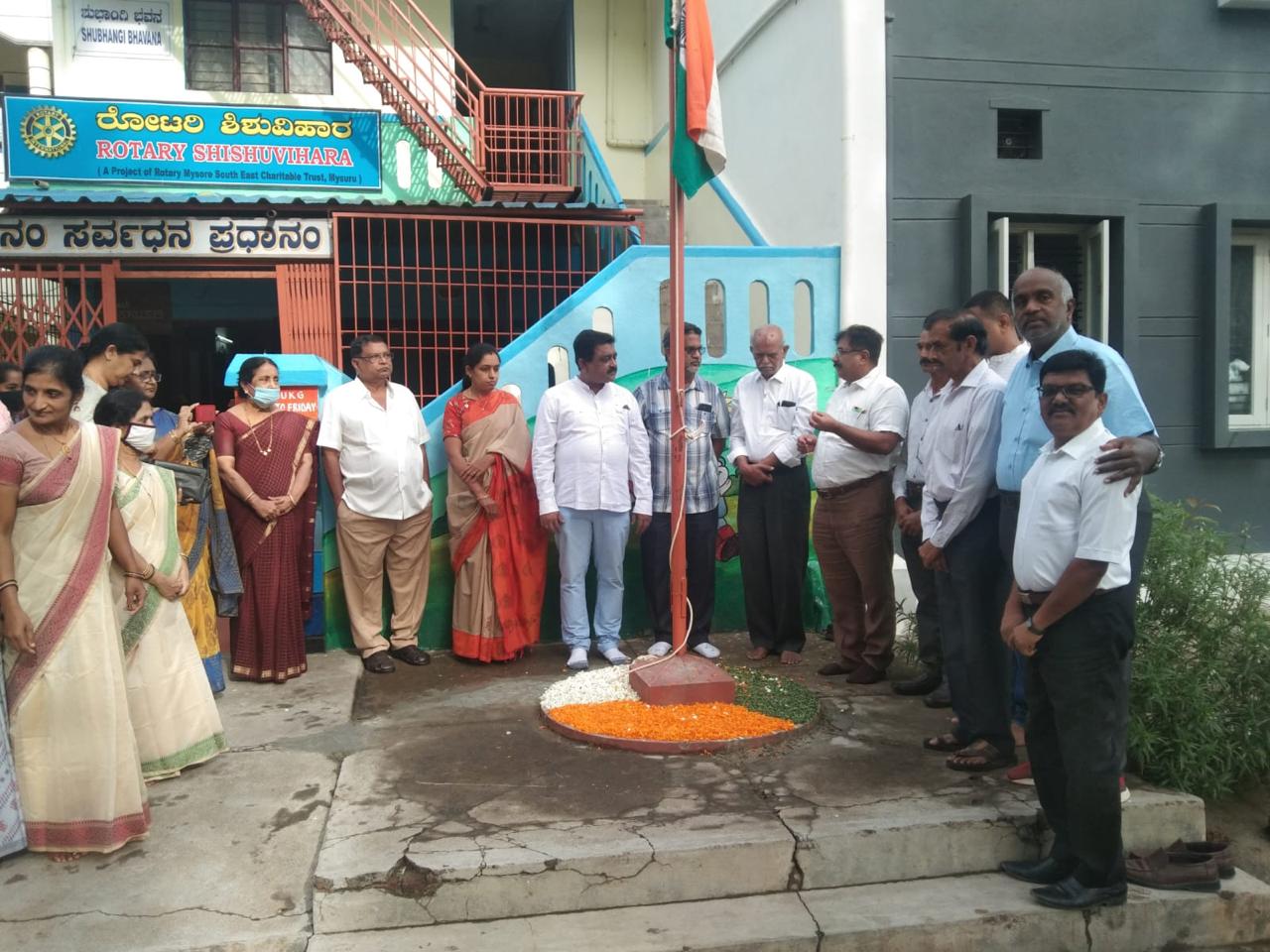 Celebrated Independence Day at Rotary shishuvihara, Jayanagar, Mysore with Rotarians and school staff.