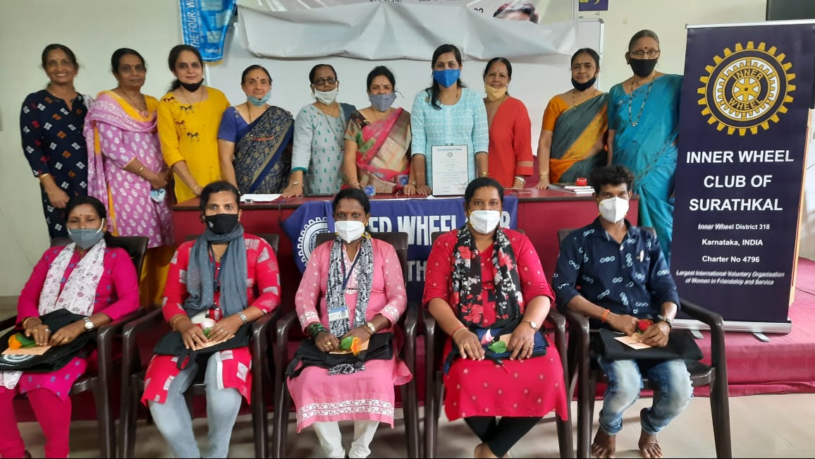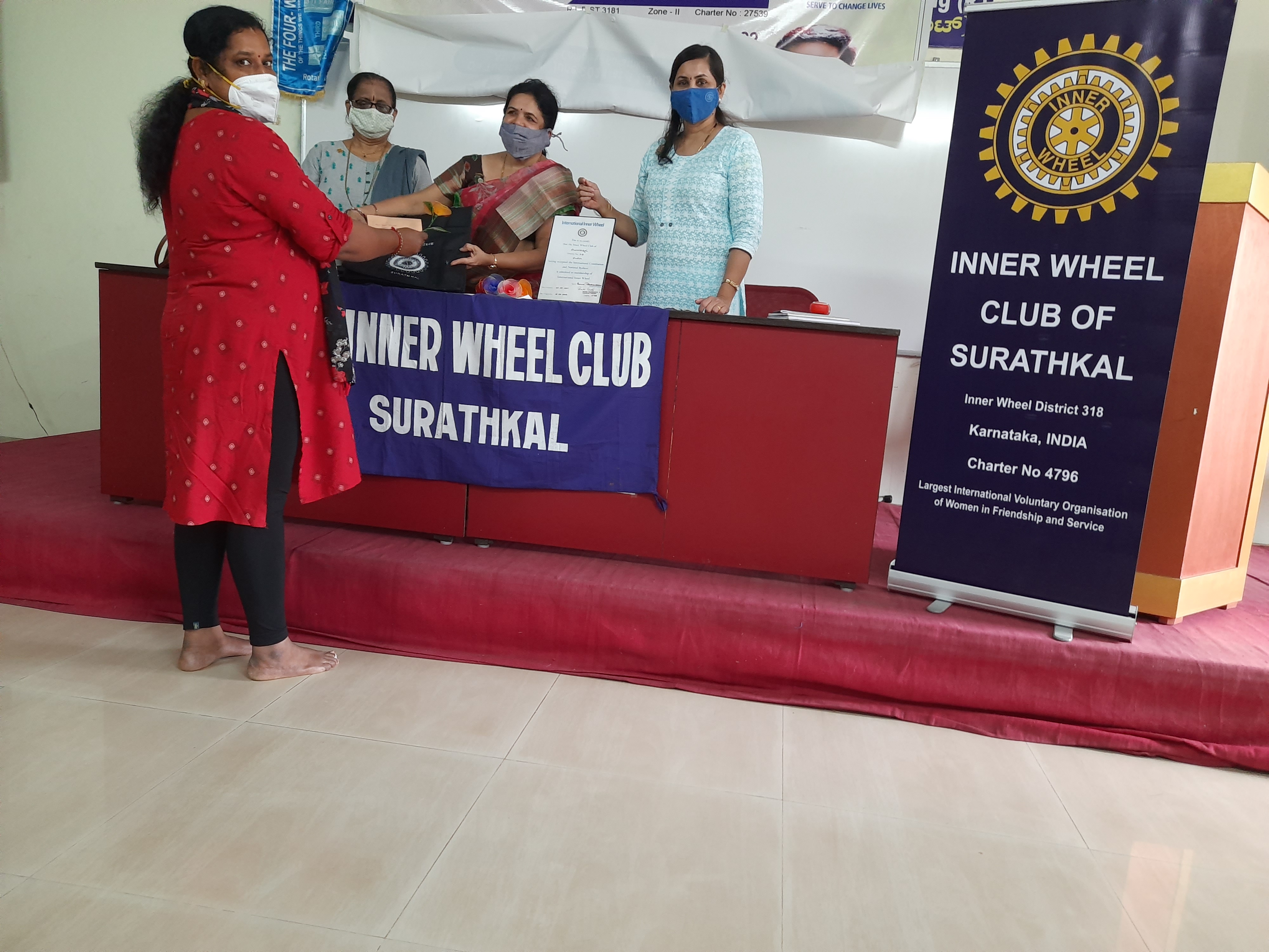 Gave innerwheel branded hand bags and Rs 700/-to 5 health workers in and surathkal area