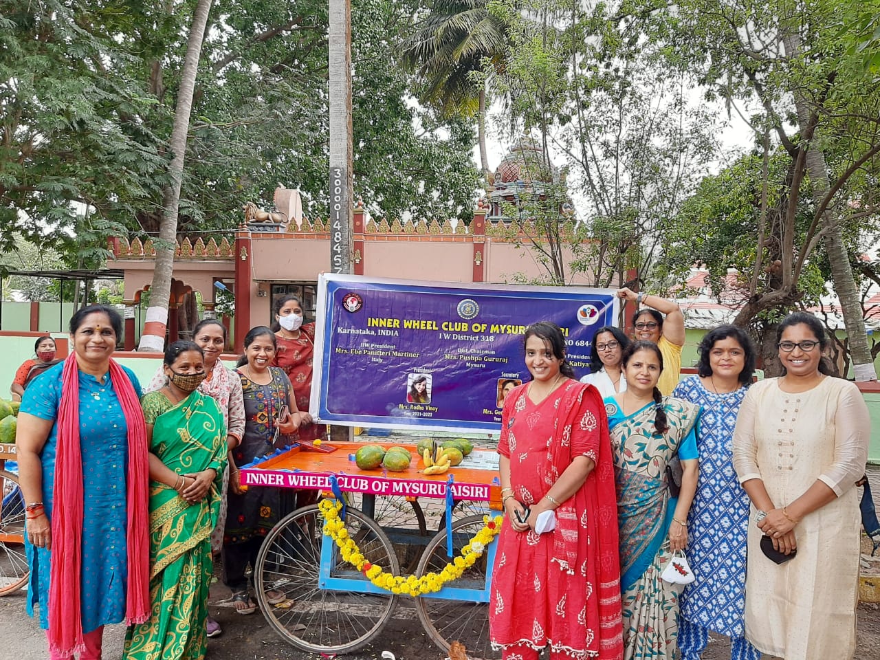 Mrs Usha from Vontikoppla road side fruit vendor was in need of wheel cart for selling fruits . Iwc mysuru Aisiri helped her in the need.
