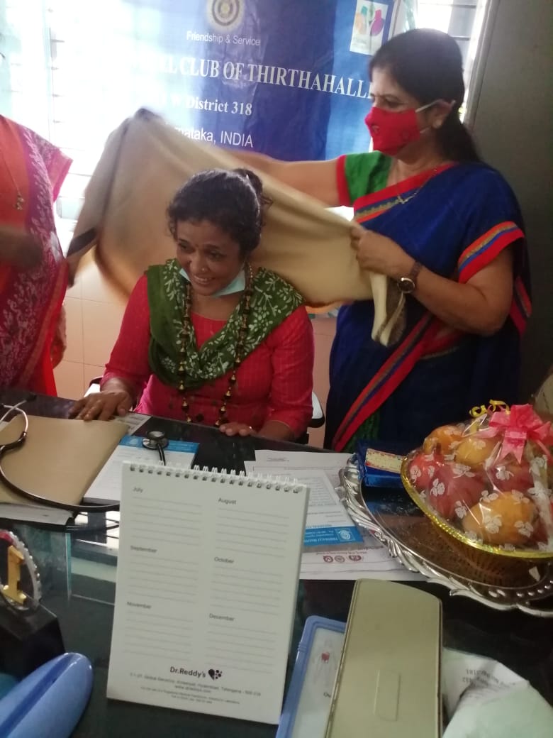 On 05/07/2021 IWC Thirthahalli has has honoured Dr.Suma, gynecologist in Govt. Hospital here. Our club has recognised her for her restless service to the society.