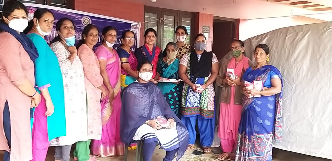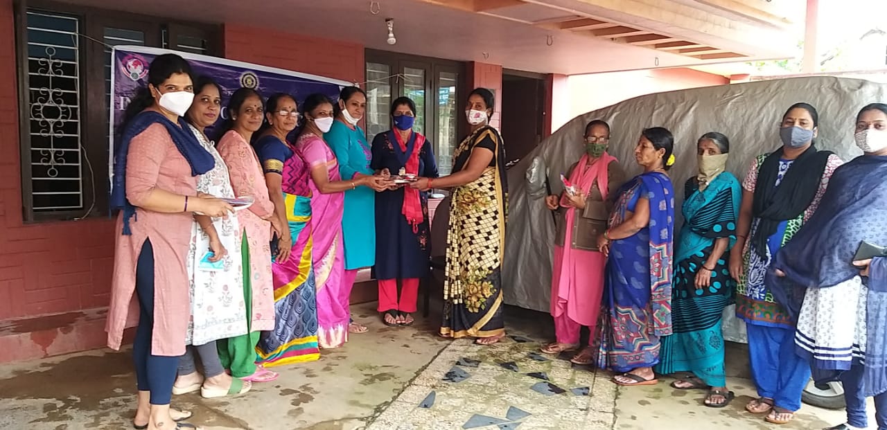 On 17/07/2021 evening our president Smt.Bhagya Ithal has distributed Masks and sanitizers to maid servents in car street, Thirthahalli