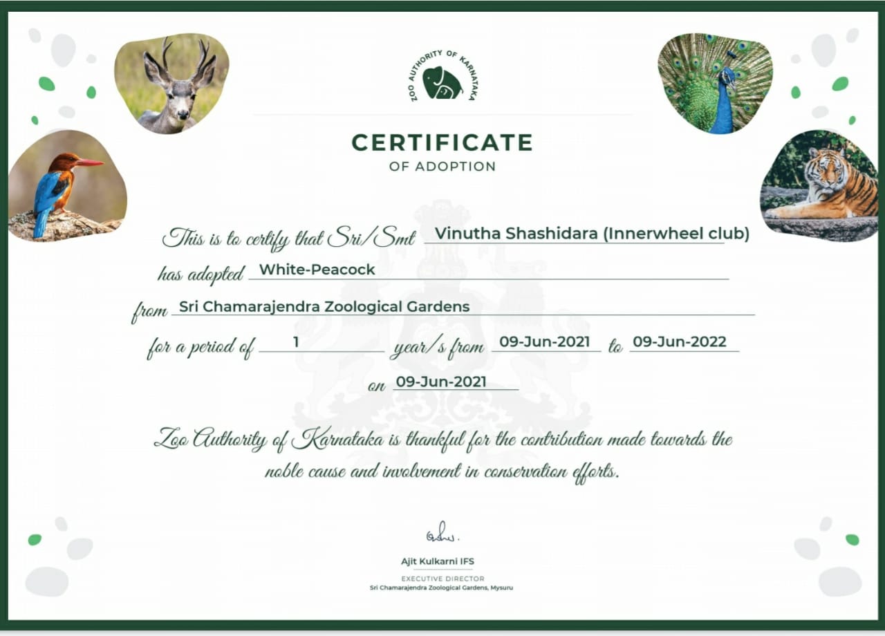 We adopted a white peacock in chamarajendra zoological garden for one year