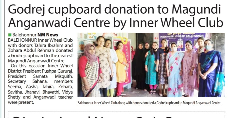 On 25/09/2021 our club members Mrs. Zohra Rehman and Mrs. Tahira Ibhrahim donated a Godrej Almirah to Government High School in Magundi. This program was done in the presence of District Chairman Mrs. Pushpa Gururaj.