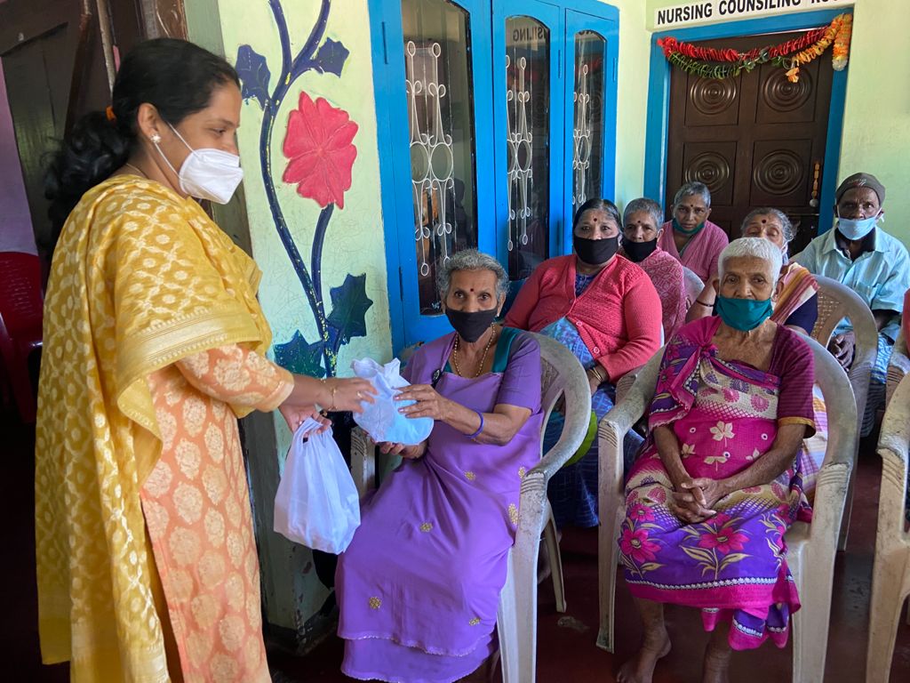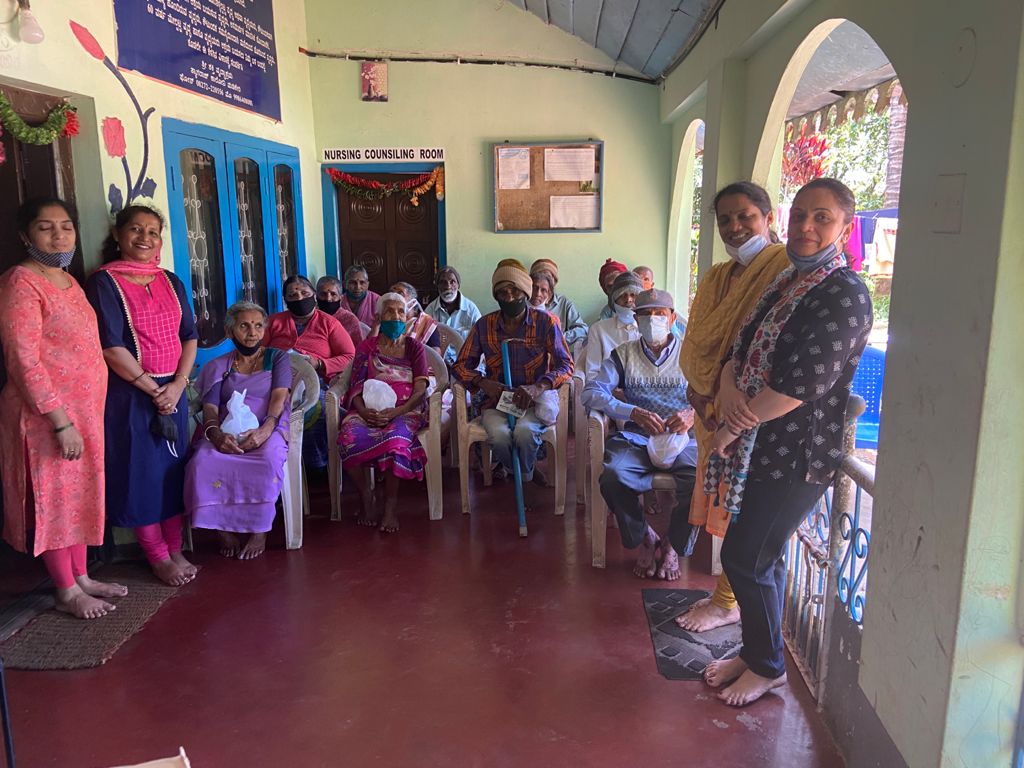 On 20th September we visited Shakthi dama Old age home at Madikeri and gave essential kits consisting of personal items( toothpaste, brush, towel , soap, mask) and biscuits to the inmates.