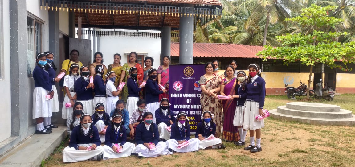Today we had a program on ' Awareness on Menstrual Hygiene ' to girl students of Sumana Vidya Kendra. President Mrs Saranya Chouta explained to them about menstrual Hygiene and increased awareness about the need, usage and disposal of Sanitary Napkins .We gave Oxo Biodegradable Sanitary Napkins to the girl students.Biscuits were distributed to the students and staff present there.