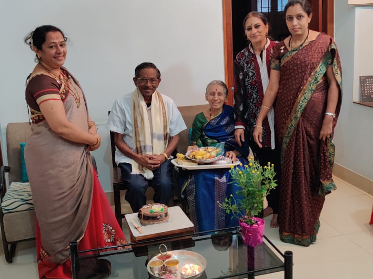 Celebrated 60th Wedding anniversary of our club charter member Mrs. Pooornima and Rtn. Dwarkanath by cutting cake and gifted them mangala drawya and flowering plant ,at their residence to show our love and respect to the senior members.