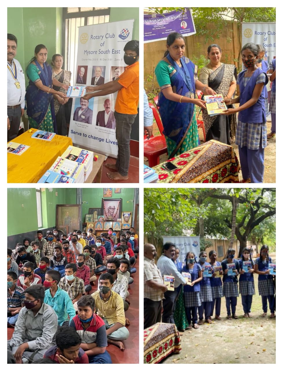 Under Rotary Vidyasethu project distributed Science, Mathematics and English Guides to the Highschool students at TS Subbanna Govt. Highschool and at Institution Of Education Highschool for girls in association with Rotary Mysore South East.