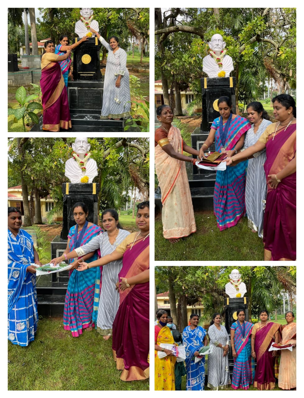 On the occasion of Gandhi Jayanthi and Lalbahadur Shastriji birthday we offered garland to Gandhiji statue .we recognised the powrakarmikas who keeps our surroundings and city clean and hygiene, for their self less service even during the pandemic .we gave them sarees and sweets at Freedom fighters park, Mysore. which made them happy .