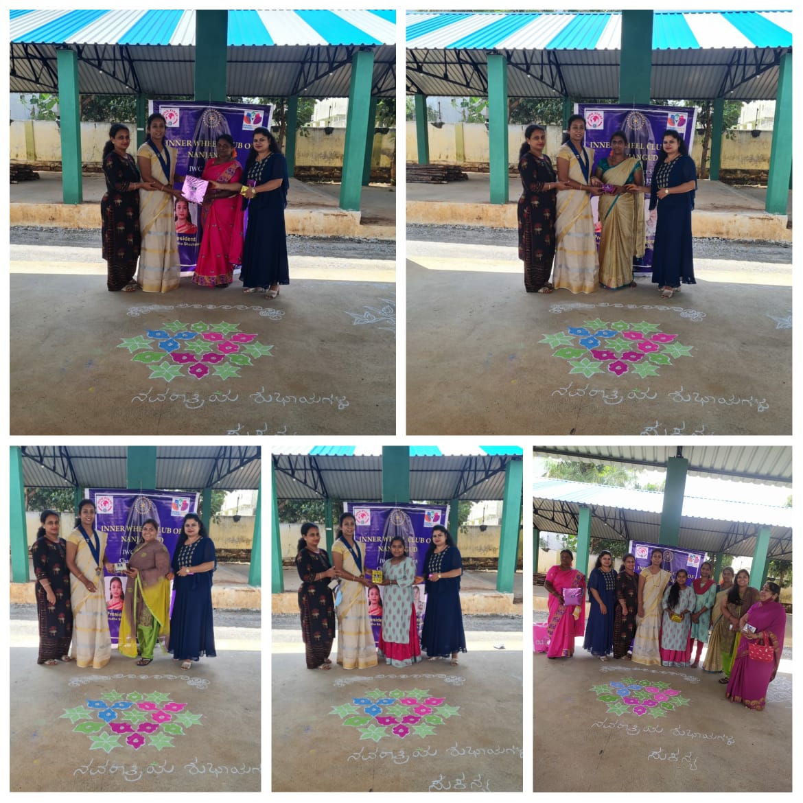 We conducted rangoli competition for public on eve of Navarathri celebration and gave prizes for best . 15 ladies participated in the competition