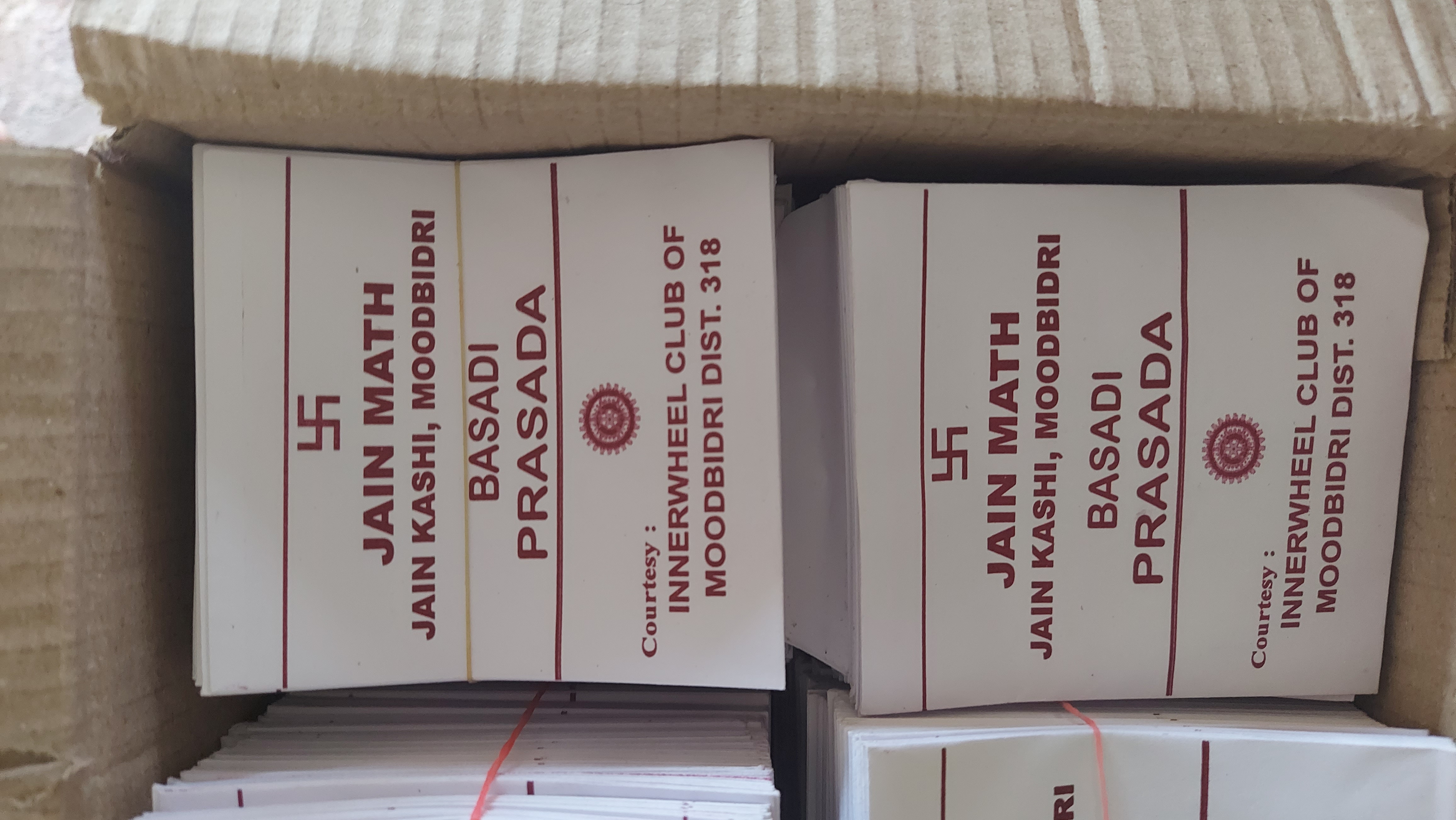 On the request from Swamiji of Jain matt, handed over 1000 Prasada envelopes with Innerwheel name and logo.