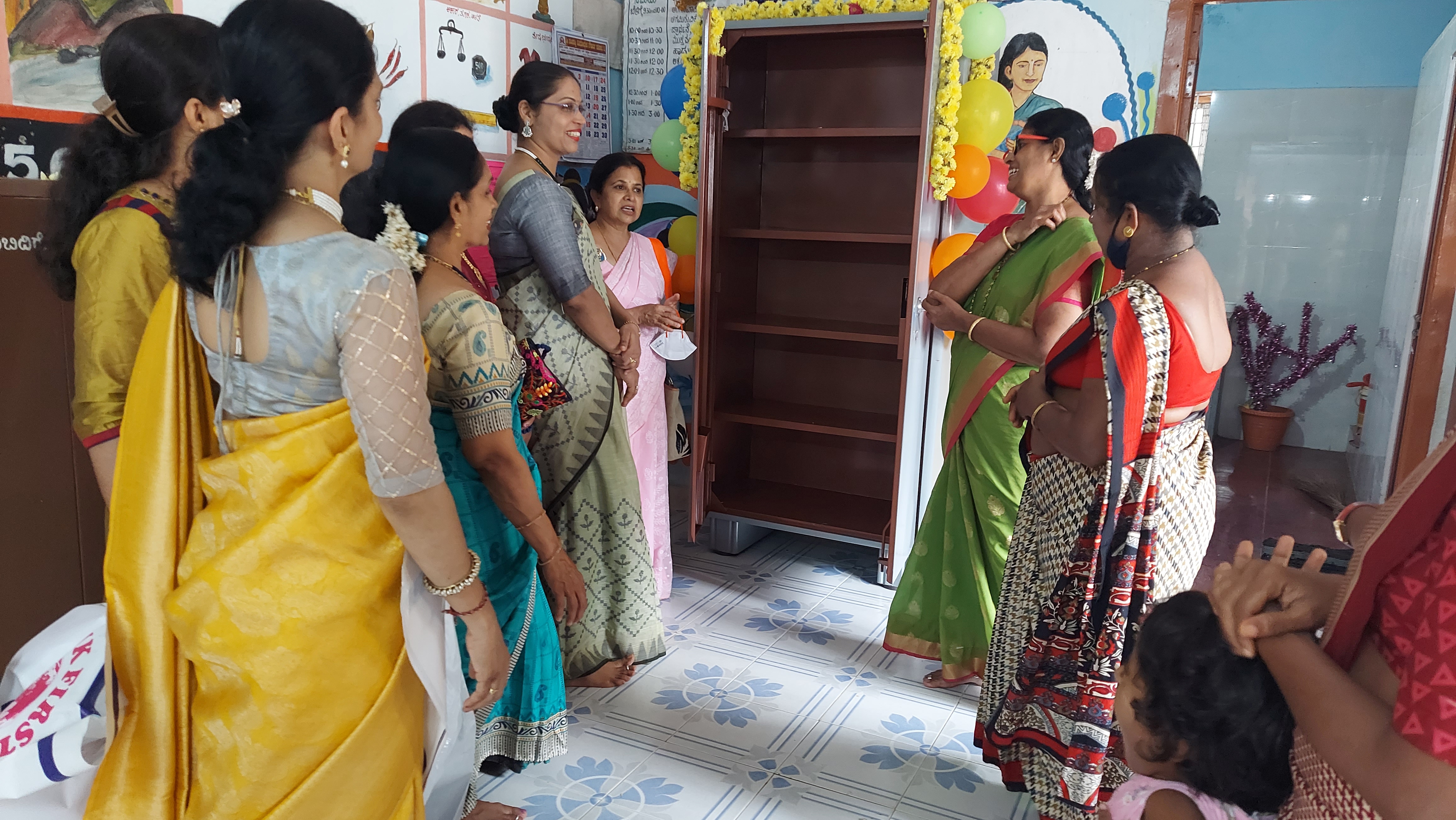 On the request by the Anganwadi Teacher, handed over Steel Almirah to store files and books.