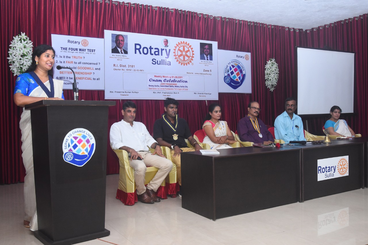On 01/09/2021 we celebrated Onam festival jointly with Rotary club sullia and Rotary city Sullia at Rotary community hall, Sullia. Mrs.Ambika Chandrashekhar was the guest speaker.