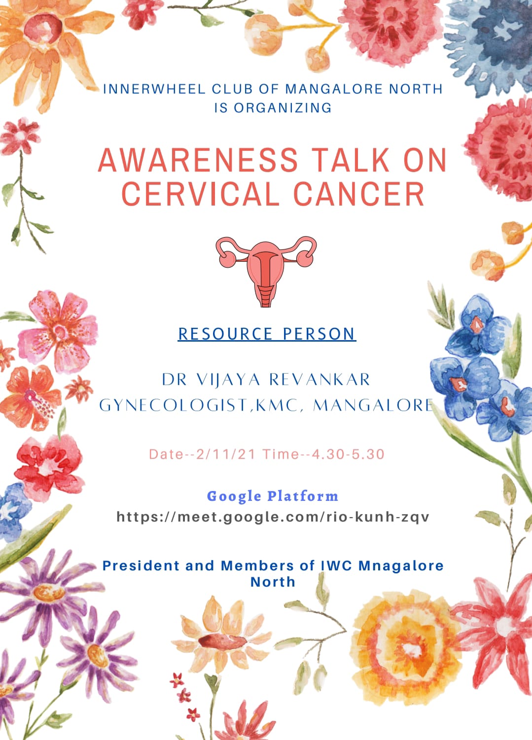 We had organized a webinar on the awareness on cervical cancer for all IWC members and outsiders too.Dr Vijaya Revankar a well known Gynecologist was the resource person.Who explained about the cervical cancer and its effects cause ,treatment and prevention by Vaccination.