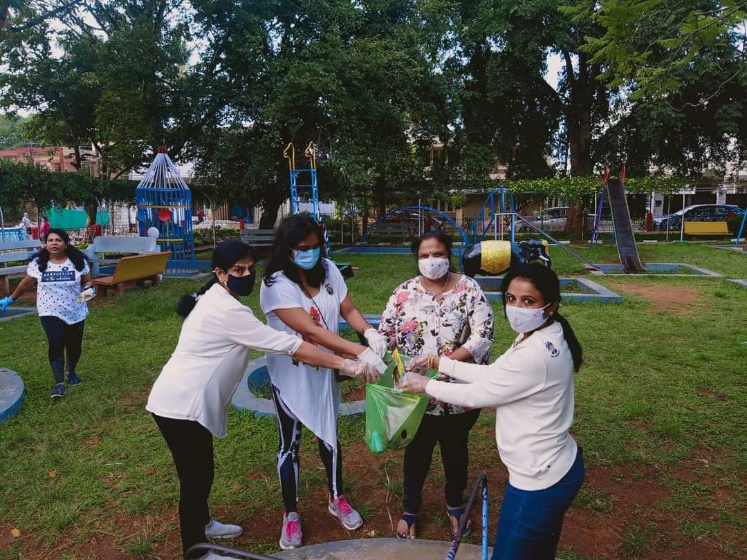 We along with the few neighbouring residents picked up the plastic covers, masks , plastic bottles scattered by the visitors to the park to eradicate the hazards of plastic. The area corporator Smt Bhagya was impressed by our work and joined hands with us along with the health inspector of the area and few pourakarmikas. We on behalf of the club thanked her and her team for her initiation.