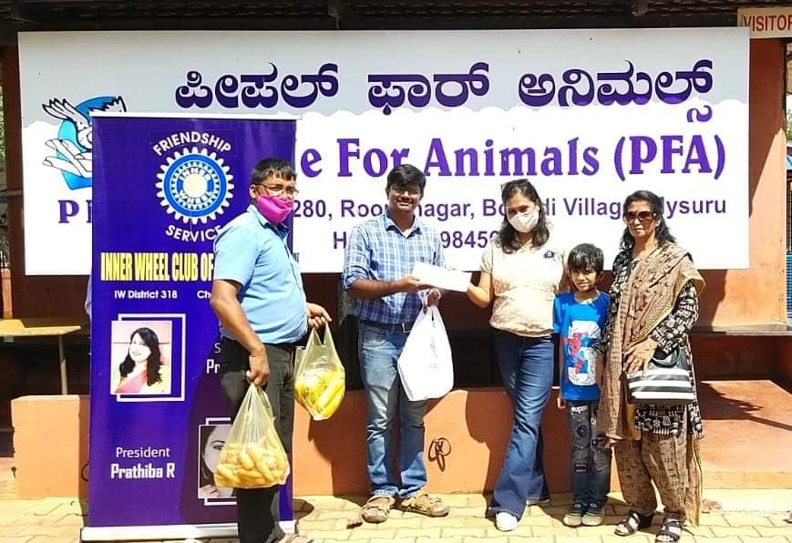 We donated the following items to People for Animals (an NGO which provides shelter for sick and abandoned animals) at Bhogadi Mysore , who take care of stray animals: Bananas, carrots, leash, animal mouth mask, dog food, amount for sterilisation of dogs and most importantly radium neck belts for the safety of stray dogs at night .The radium collars will help the dogs to spot easily during nights or foggy weather.This will save lots of stray dogs and cows life in road accidents.