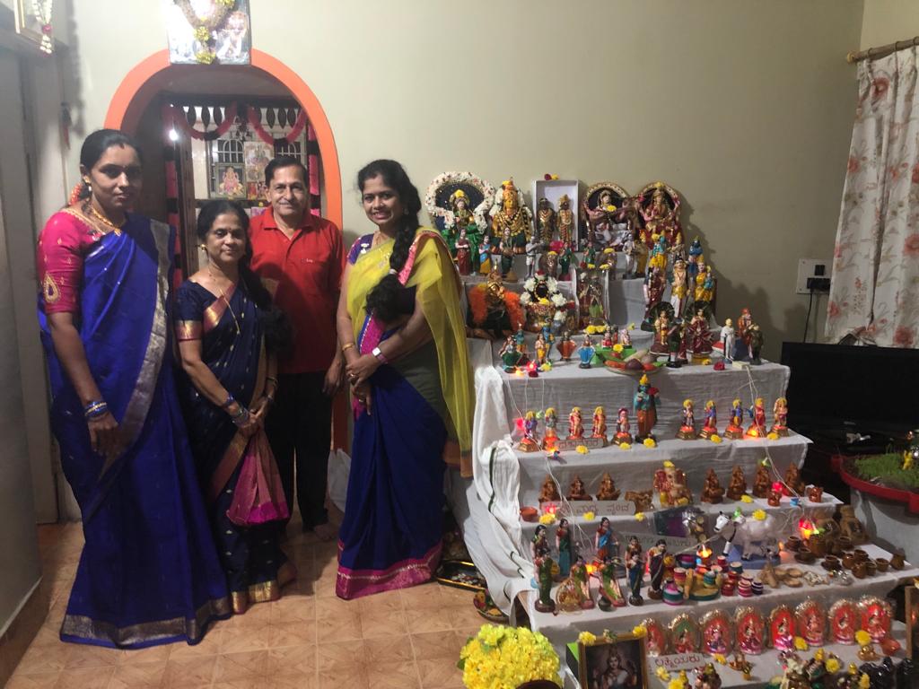 Celebrated Dasara Navarathri festival at Smt.Gayathri madam residence who is a recipient of many Awards for Dasara Doll arrangements.She narrated a story mentioning the importance of celebrating Dasara . Kum. Sharanya daughter of our member sang Devotional songs and we distributed mangala drawya and sweets .