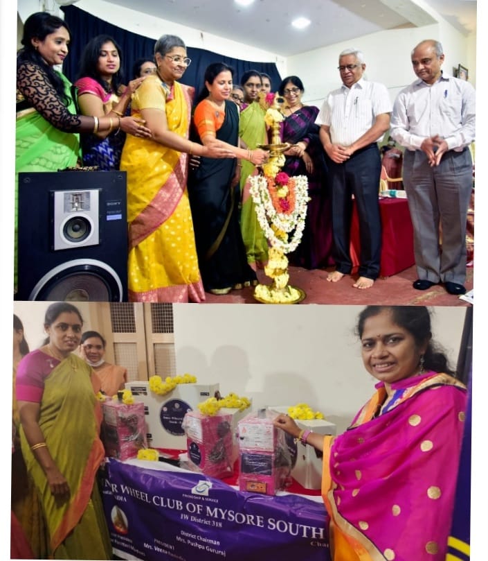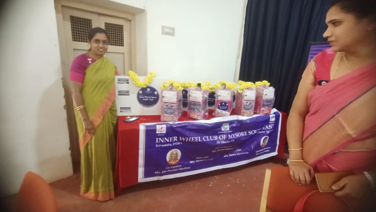 9 sanitary dispensers and incinerators donated to Sharadha Vilas Educational institutions as a joint project with 7 innerwheel clubs of Mysore.